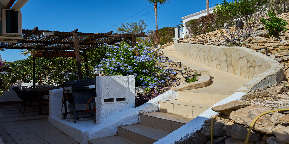 Bij de bovenste pergola, naast de voordeur en keuken, staat een moderne gasbarbecue klaar voor culinaire avonturen. Deze ligging maakt het eenvoudig om heerlijke maaltijden te bereiden en te serveren, terwijl je geniet van het panoramische uitzicht. De Naya, ingericht als eetkamer, met een over de top uitgeruste koffiecorner, inclusief SMEG-apparatuur en een wijnkoeler, biedt een spectaculair uitzicht over Jávea en op heldere dagen zelfs het eiland Ibiza.